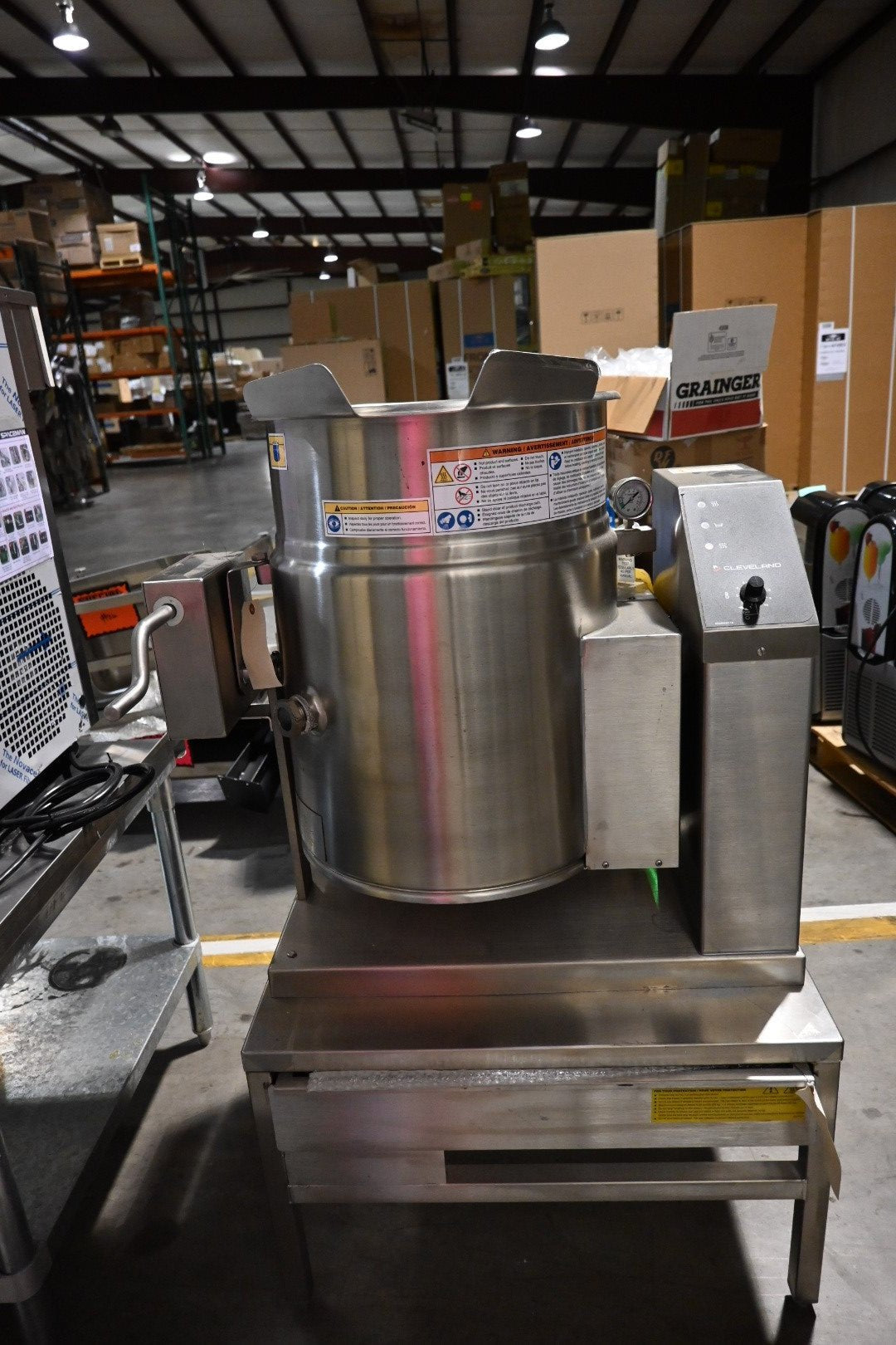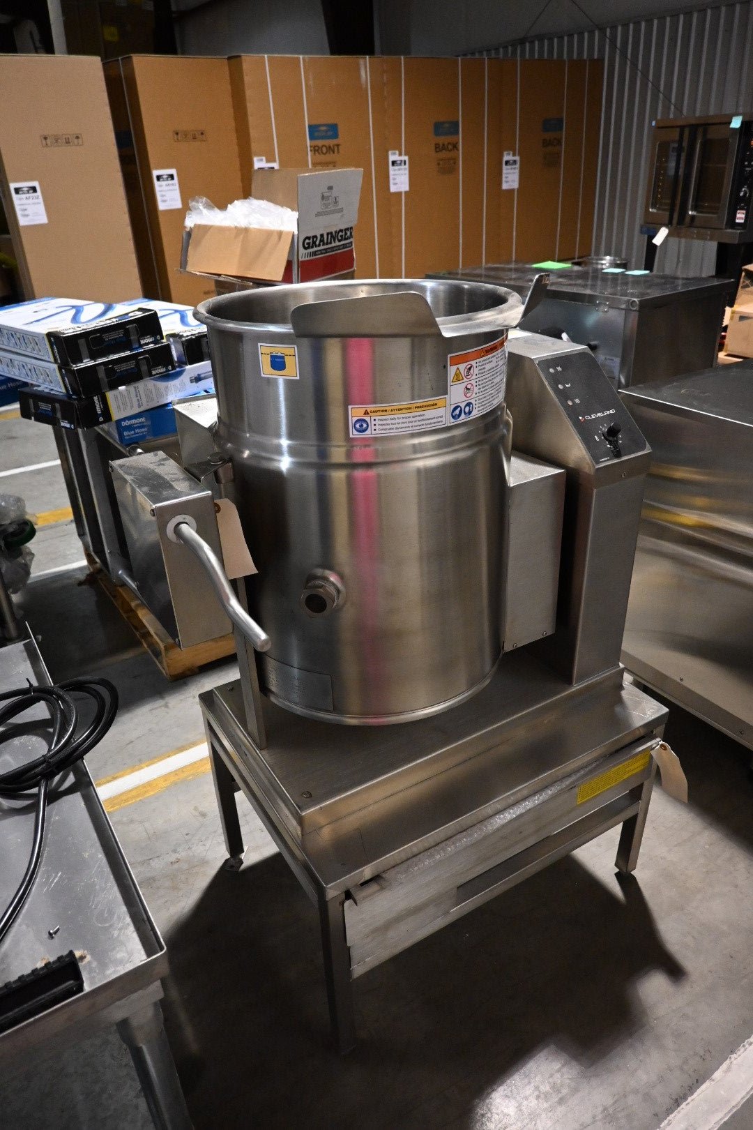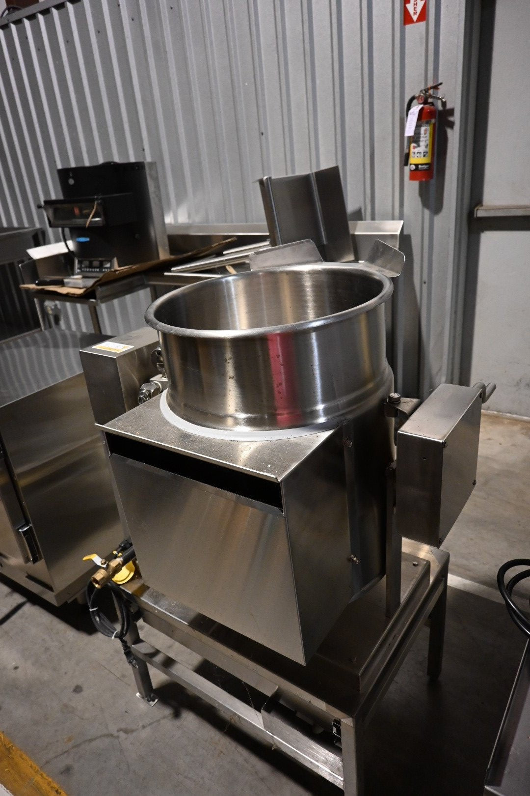 Tilting Kettle, natural gas, 12-gallon (45L) capacity, 2/3 steam jacket design, self-contained, gear box tilting, anti-drip pour spout, IPX6 water protection controls, self-locking marine style safety latch, reinforced rolled rim, support console on right, stainless steel construction with 316 series stainless steel liner, 50 PSI rated, 53,000 BTU